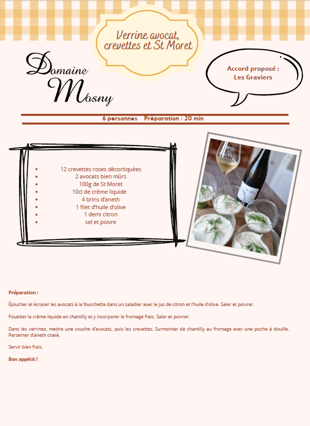 Accord « Les Graviers » avec des verrines avocat, crevettes et St Moret
